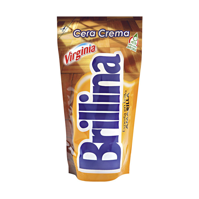 Cera Crema Brillina nutre, protege e impermeabiliza sus pisos. Se esparce confacilidad, se seca rápidamente dejando un brillo intenso y duradero, con unagradable aroma a limpio.Su exclusiva fórmula es efectiva para el encerado de pisosde madera, plásticos, parquet, baldosas, cerámicos y cemento afinado.